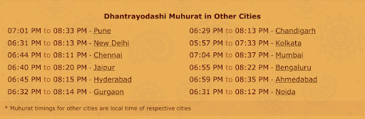 Okay, so you’re clear with the significance right but what is the exact time aka the muhurat to buy gold on Dhanteras 2024? Well, it depends on the city but Don’t worry, we’ve got you covered!